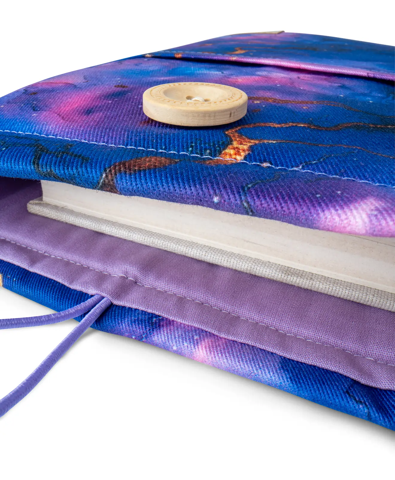 Ručně šitý látkový obal na knihy ze 100% bavlny s motivem fialového mramoru se zlatým žíháním