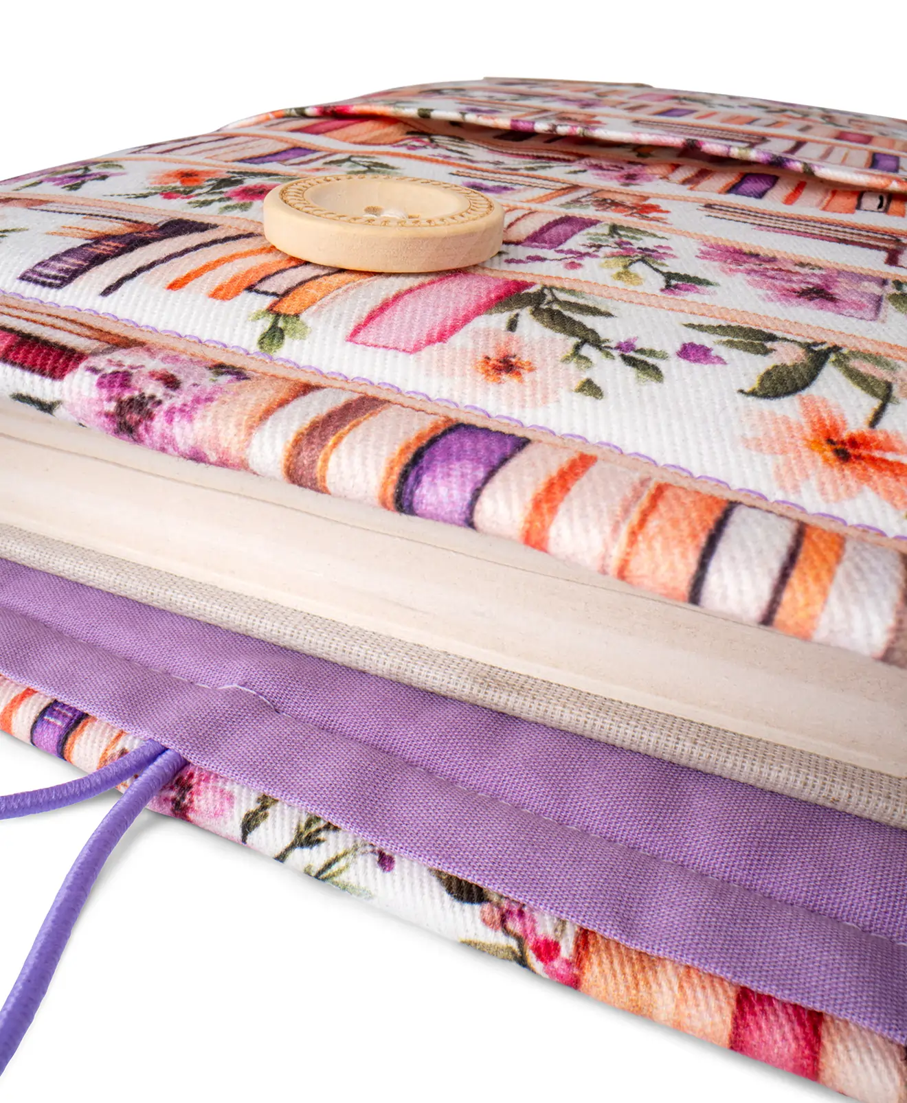 - Celý booksleeve ručně šijeme z několika vrstev výplně a látky ze 100% bavlny.